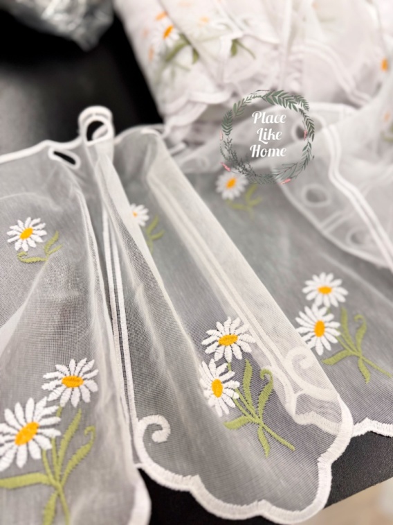 Zazdrostka „Stokrotka” to wyjątkowe połączenie delikatnej firanki i uroczego haftu, które nada Twojemu wnętrzu lekkości, świeżości i domowego ciepła.